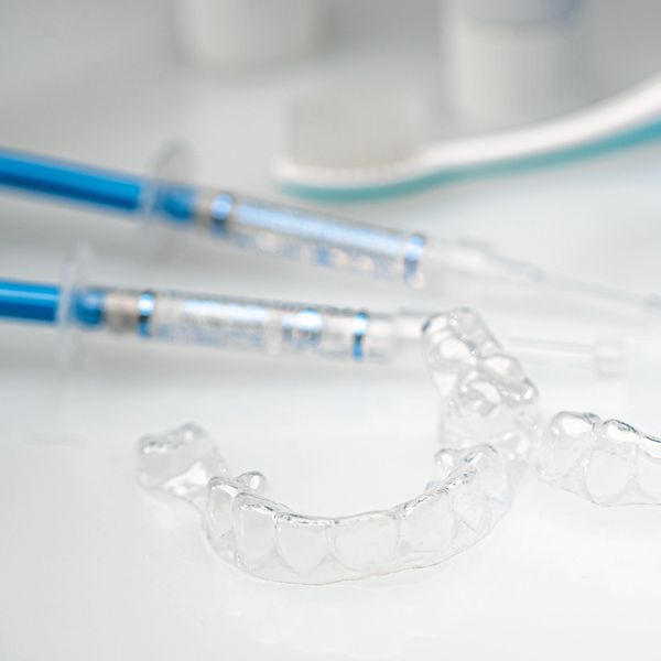 Custom whitening trays are personalized dental trays crafted by our team to fit your teeth precisely. The process begins with the d impressions or digital scans of your teeth to create molds. These molds are used to fabricate clear, thin, plastic trays tailored to the individual’s dental structure. The trays are designed to hold a professional-grade whitening gel, typically containing hydrogen peroxide or carbamide peroxide, which you can apply at home. We provide instructions on how much gel to use and the duration of wear, usually 30 minutes to a few hours daily for 1-2 weeks, depending on the desired whitening level. Custom trays ensure even gel distribution, minimize gum irritation, and offer a more comfortable, effective whitening experience compared to over-the-counter options.